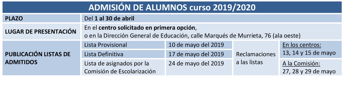 Proceso de admisión de alumnos/as 2019/2020