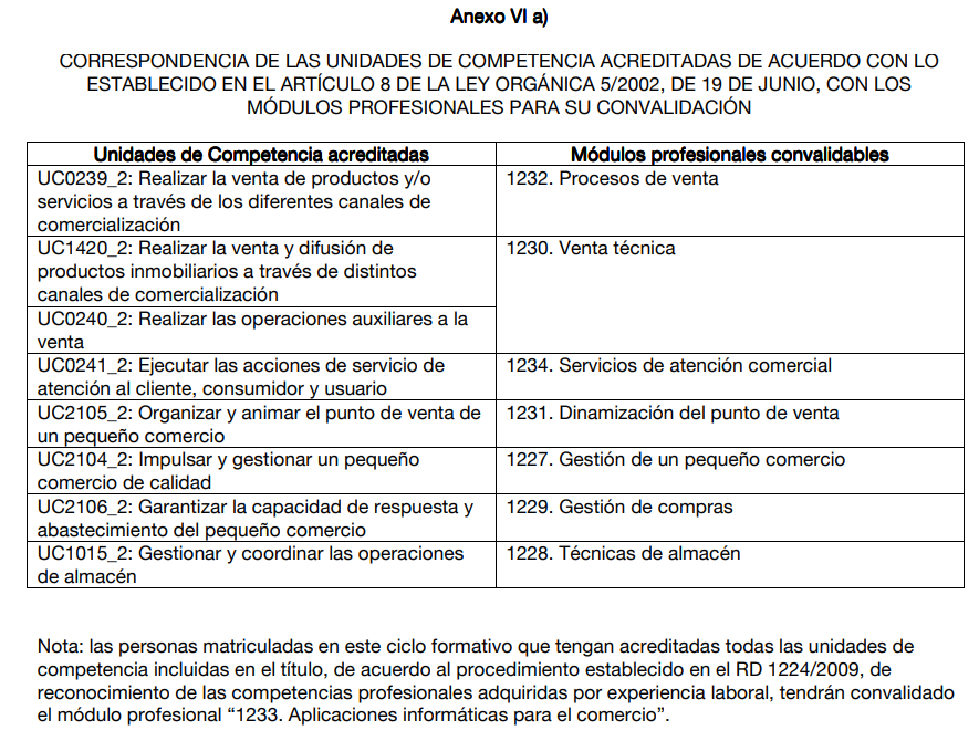 ¿Tienes acreditadas competencias profesionales relacionadas con el Ciclo Formativo de Actividades Comerciales?