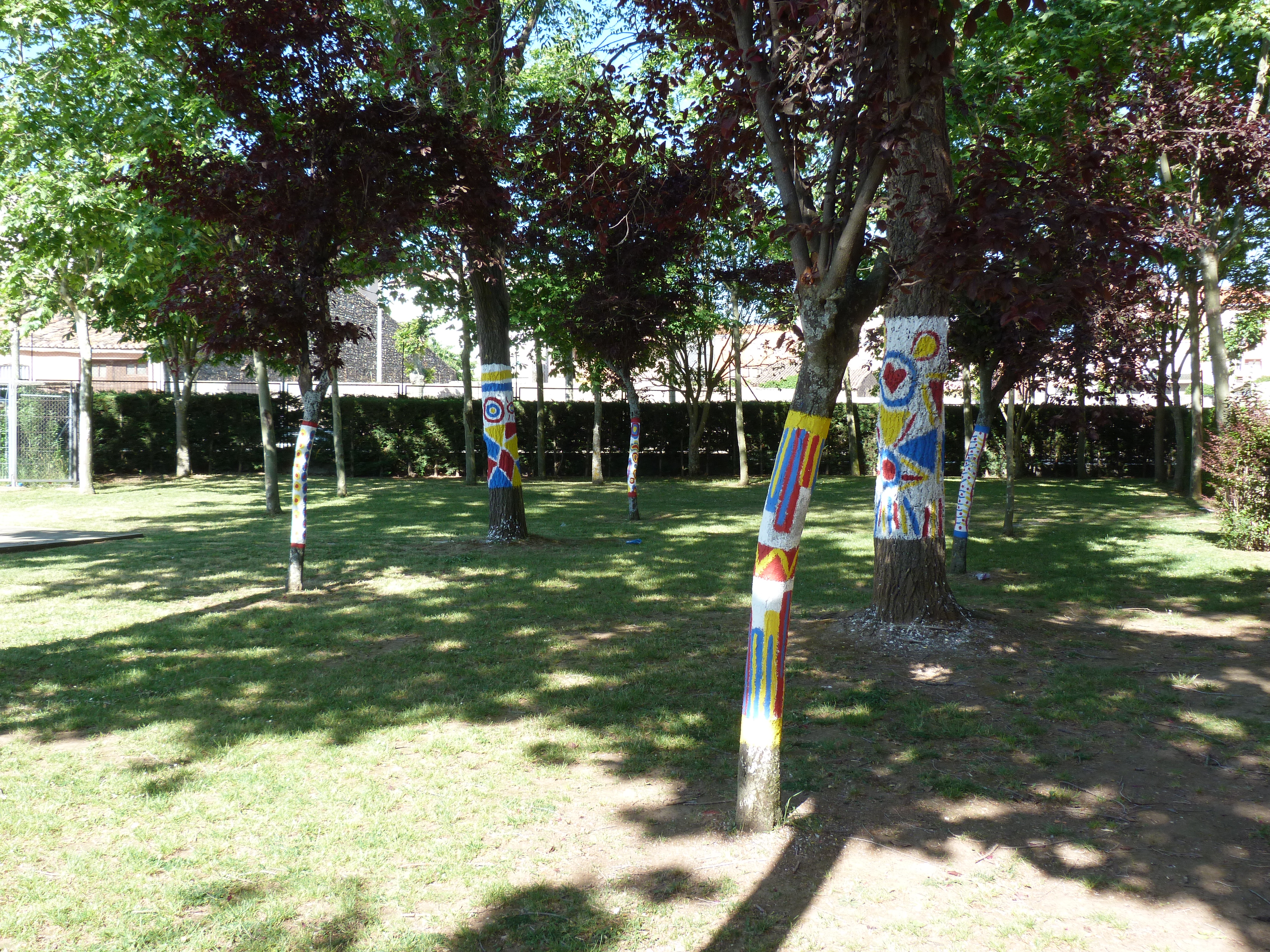 El espiritú artista se nota en el Valle del Oja. Este año estrenamos Un bosque muyn especial en el patio. Bosque pintado